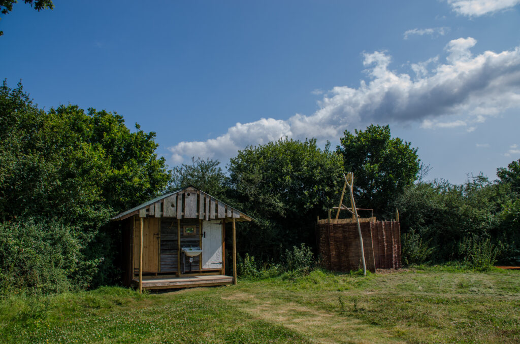 For our “Pitch your own” campers. A cosy, dry place to hunker down in the great British weather with a veranda overlooking the wildflower meadow. The perfect spot for a sundowner.