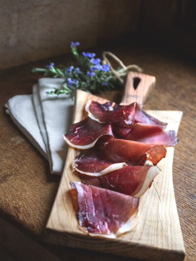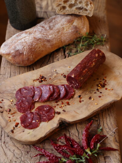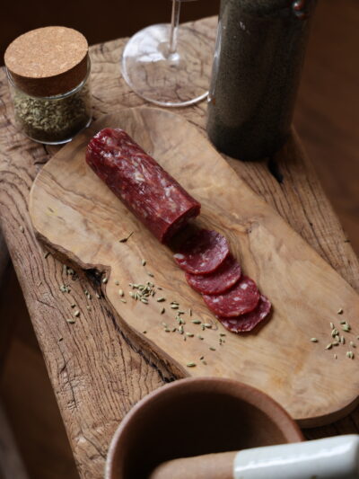 Our charcuterie is made in small batches in-house using ethical, sustainable beef from our rewilding project and pork from like-minded producers who really care about the planet, people and animals.