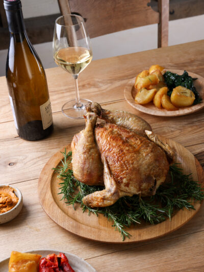 We’re proud to be partnering with Redwoods Farm to offer slow-grown, pasture-raised chickens, part of a regenerative system. From day-old chicks, they’re fed a soya-free, locally sourced diet and encouraged to forage naturally as they move daily onto fresh pasture.