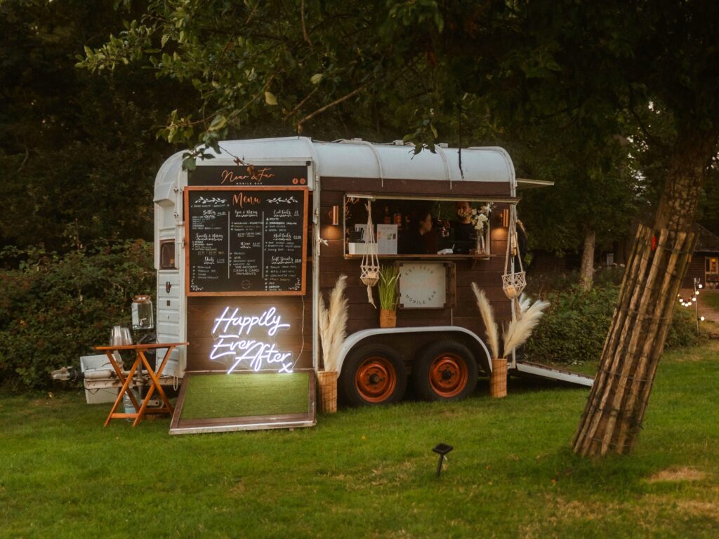 Our venue hire package includes use of the site, a woodside cabin with five adjacent loos, parking for up to 50 cars, and access to the Bothy—a charming, rustic bridal suite tucked away in the woods, offering private accommodation for the newlyweds on both Friday and Saturday nights.